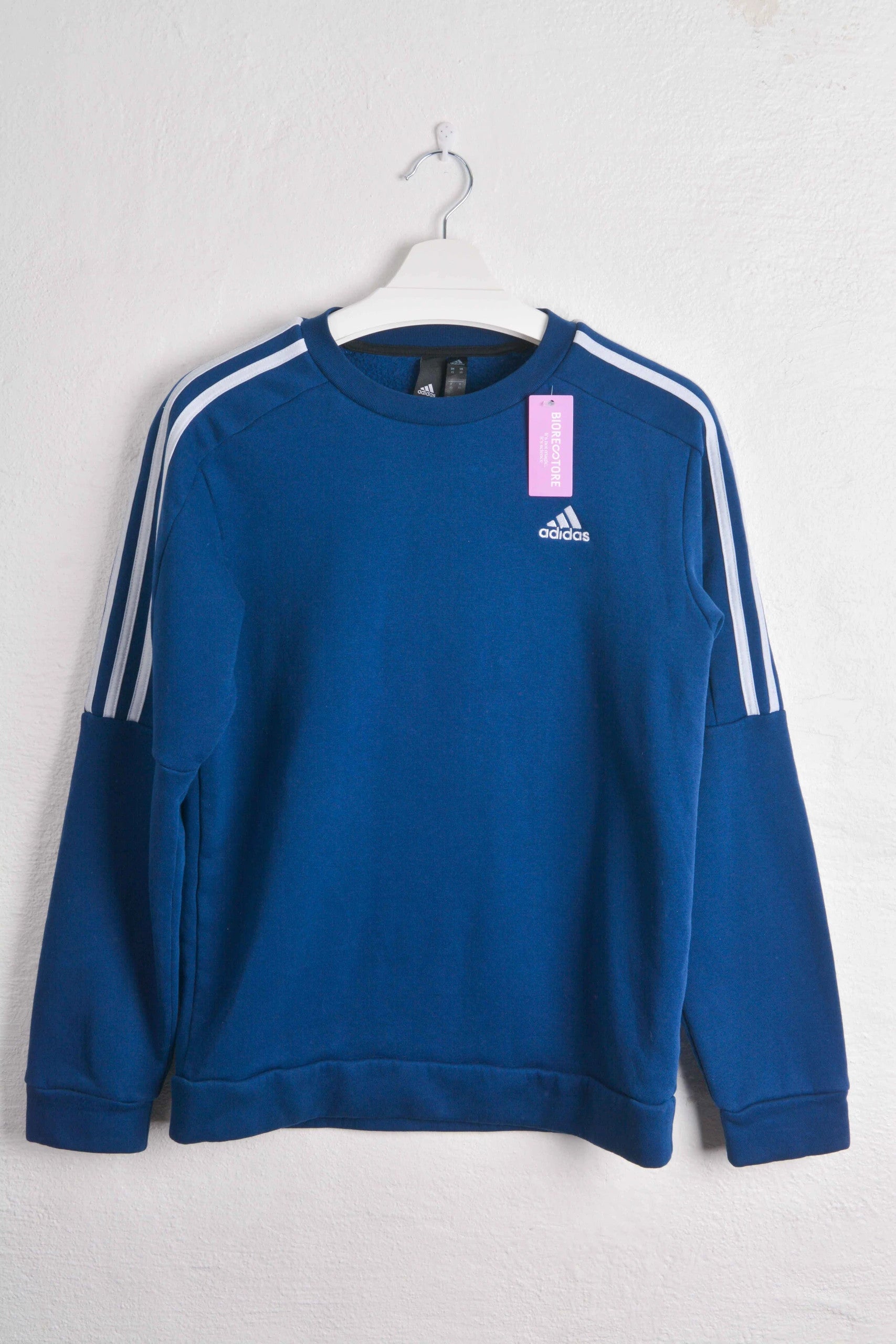 Sport the classic Adidas look with this royal blue sweatshirt adorned with signature white stripes along the sleeves. The vibrant color and iconic design make it a timeless addition to any athletic or casual outfit. Brand-new with tags, this sweatshirt is ready to deliver style and comfort to your everyday activities. Perfect for anyone seeking a pop of color and reliable Adidas quality #adidas #adidassweatshirt #sweatshirt #mensweatshirt
