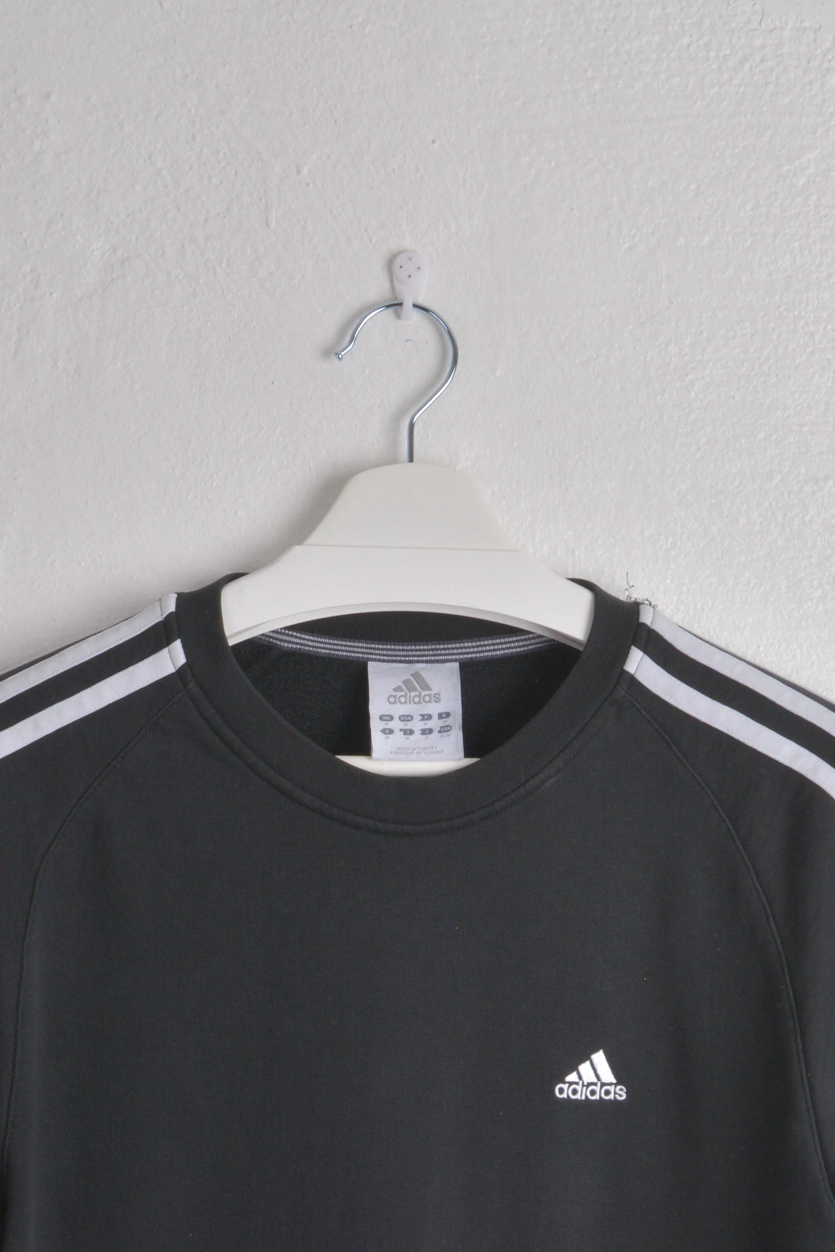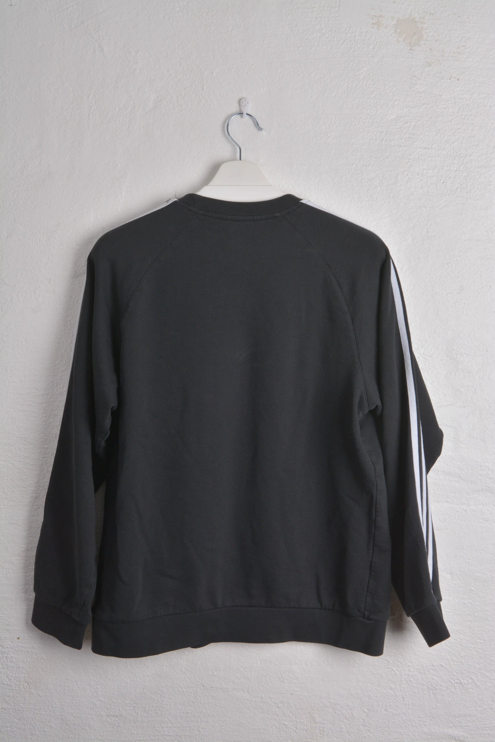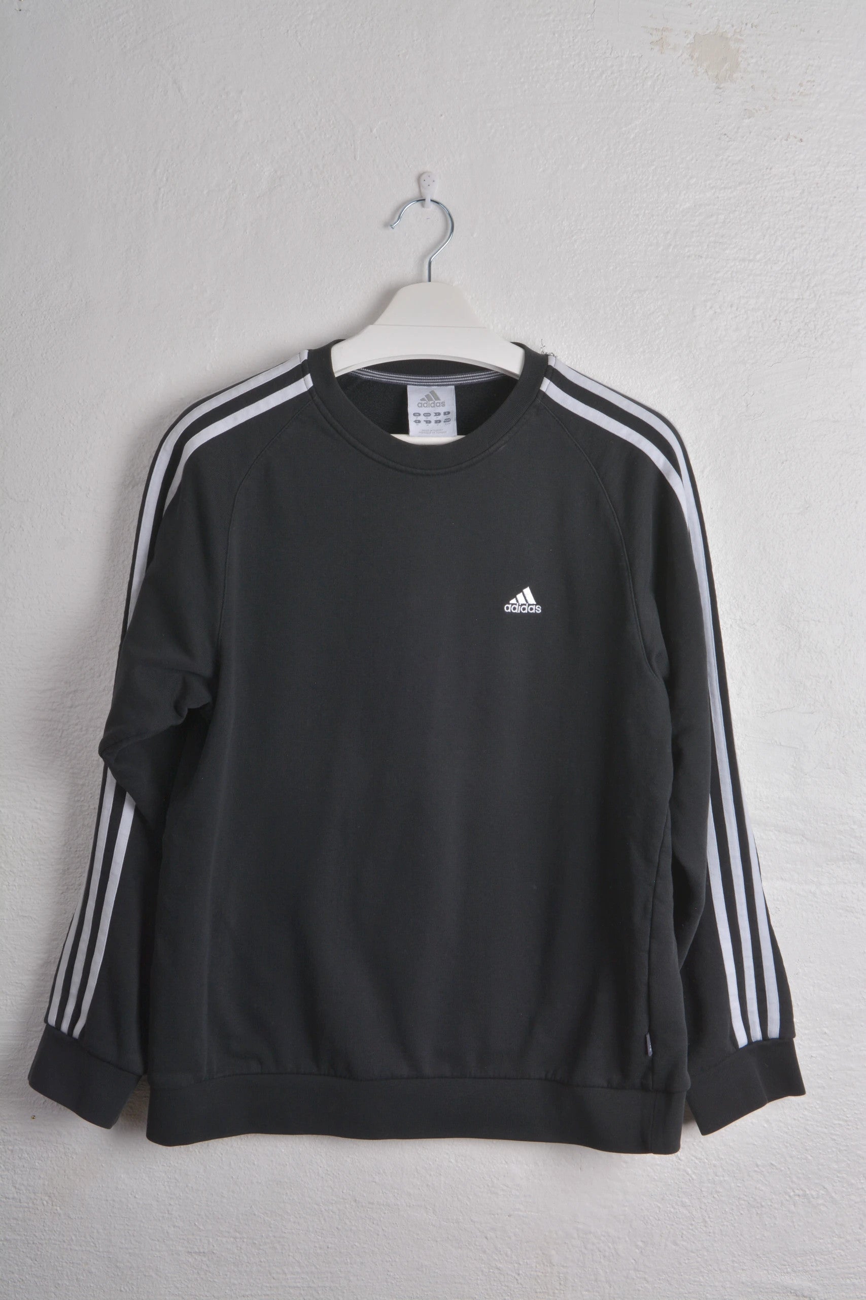 This classic black Adidas crewneck sweatshirt features signature white stripes down the sleeves, offering a timeless athletic look. The lightweight fabric ensures comfort and flexibility, making it perfect for both active and casual wear. This piece is in excellent condition, complete with original tags, providing a stylish yet functional addition to your wardrobe. Ideal for those who value simplicity with a sporty edge. #adidas #adidassweatshirt #sweatshirt #mensweatshirt