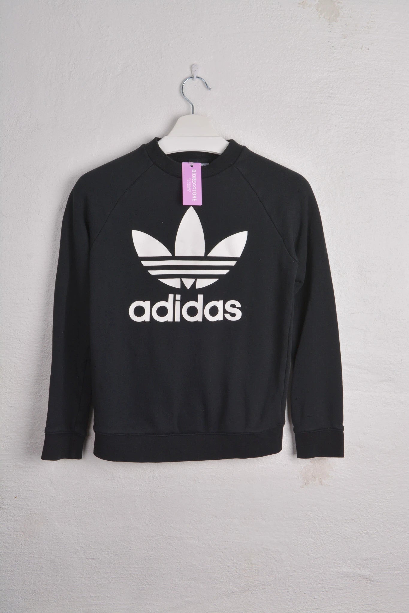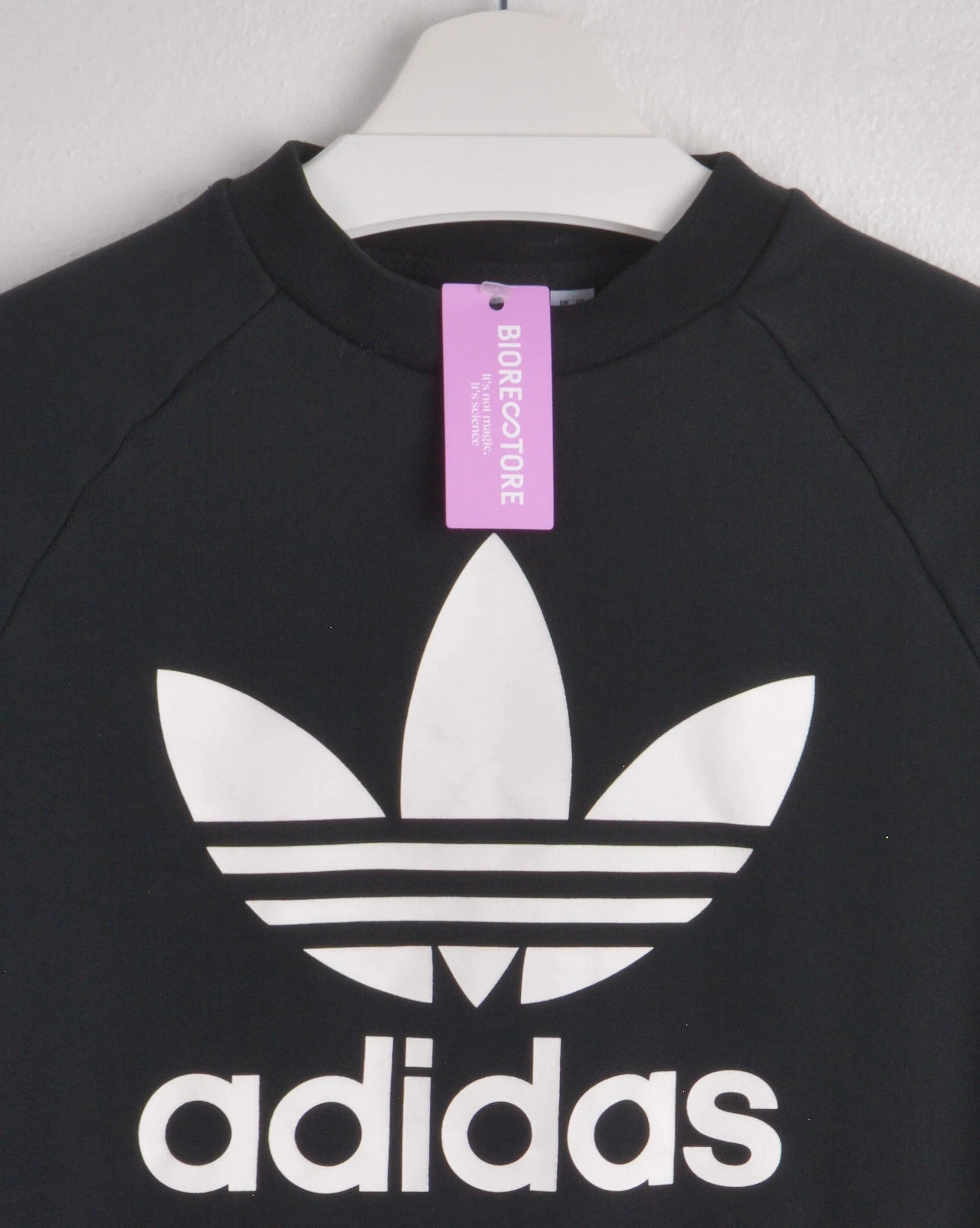 Experience timeless style with this Adidas crewneck, featuring the iconic white trefoil logo on a sleek black...