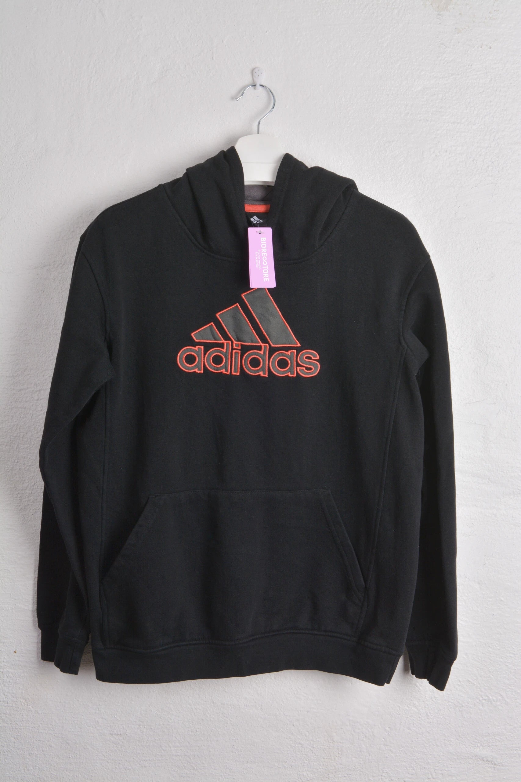 For sale: Cozy Adidas hoodie in black, size Large. Featuring a bold red logo design, this hoodie...