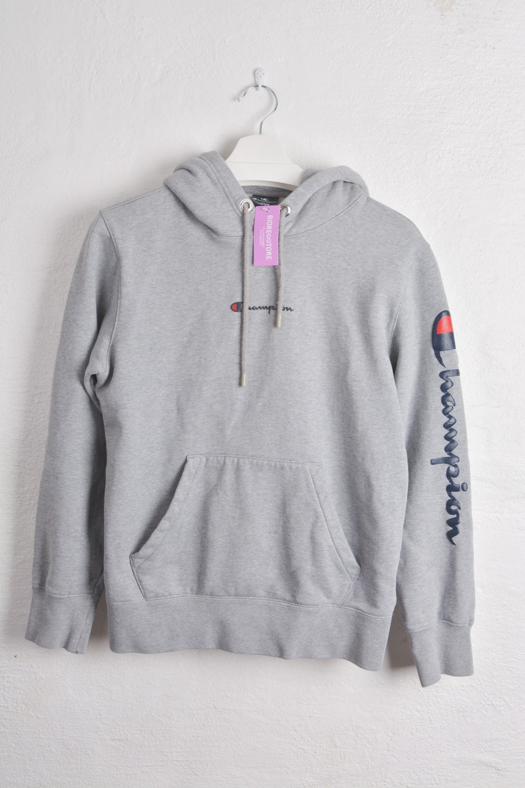 Champion hoodie in a soft heather grey, size Large. This hoodie features the iconic Champion logo on...