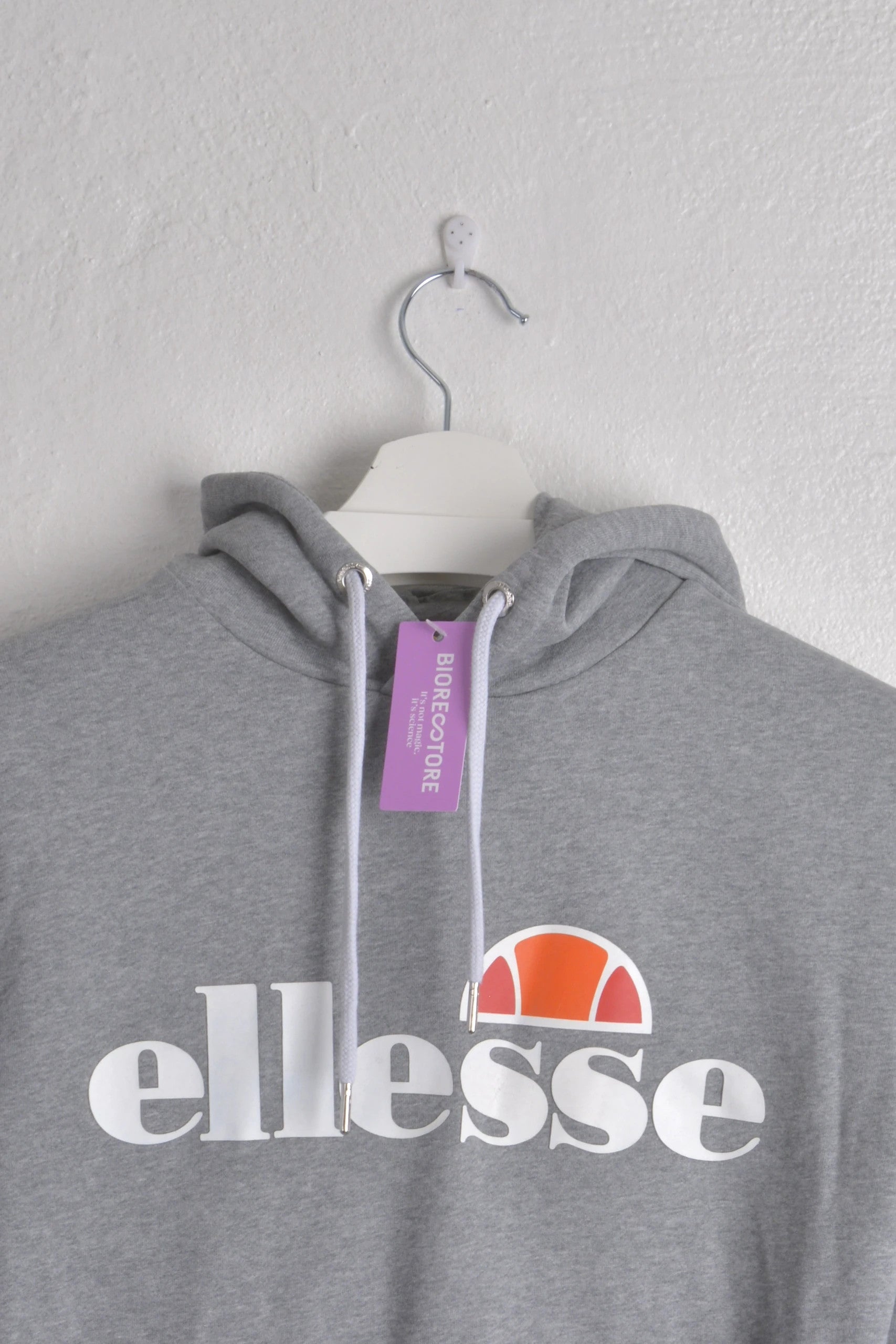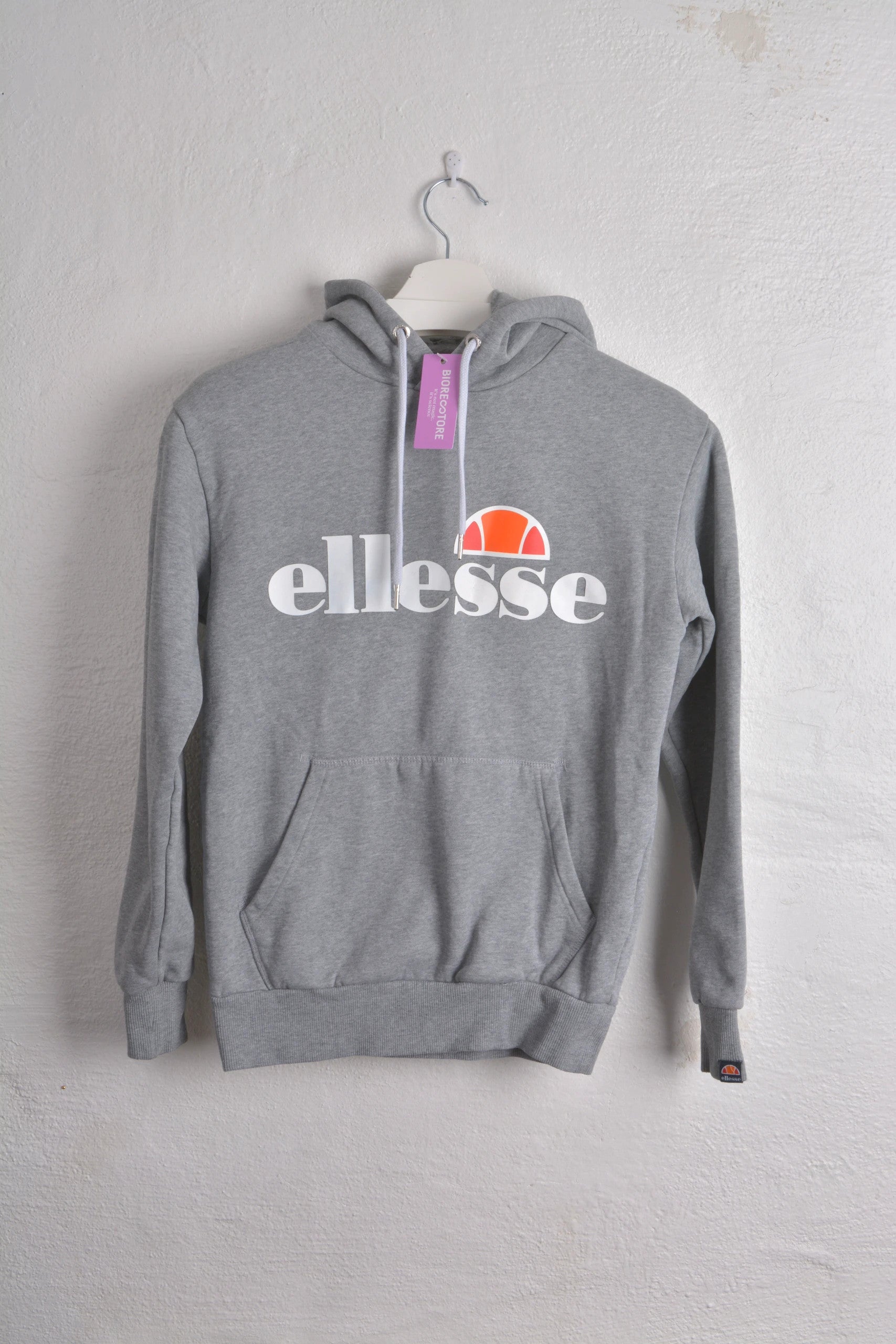 Upgrade your casual wardrobe with this classic gray Ellesse hoodie. Featuring the iconic Ellesse logo in white and orange, it's displayed on a simple white hanger. Ideal for everyday wear or your next workout session. #Ellesse #brand #hoodie #menhoodie #menwear #menstyle #Ellessehoodie #hoodies #greyhoodie