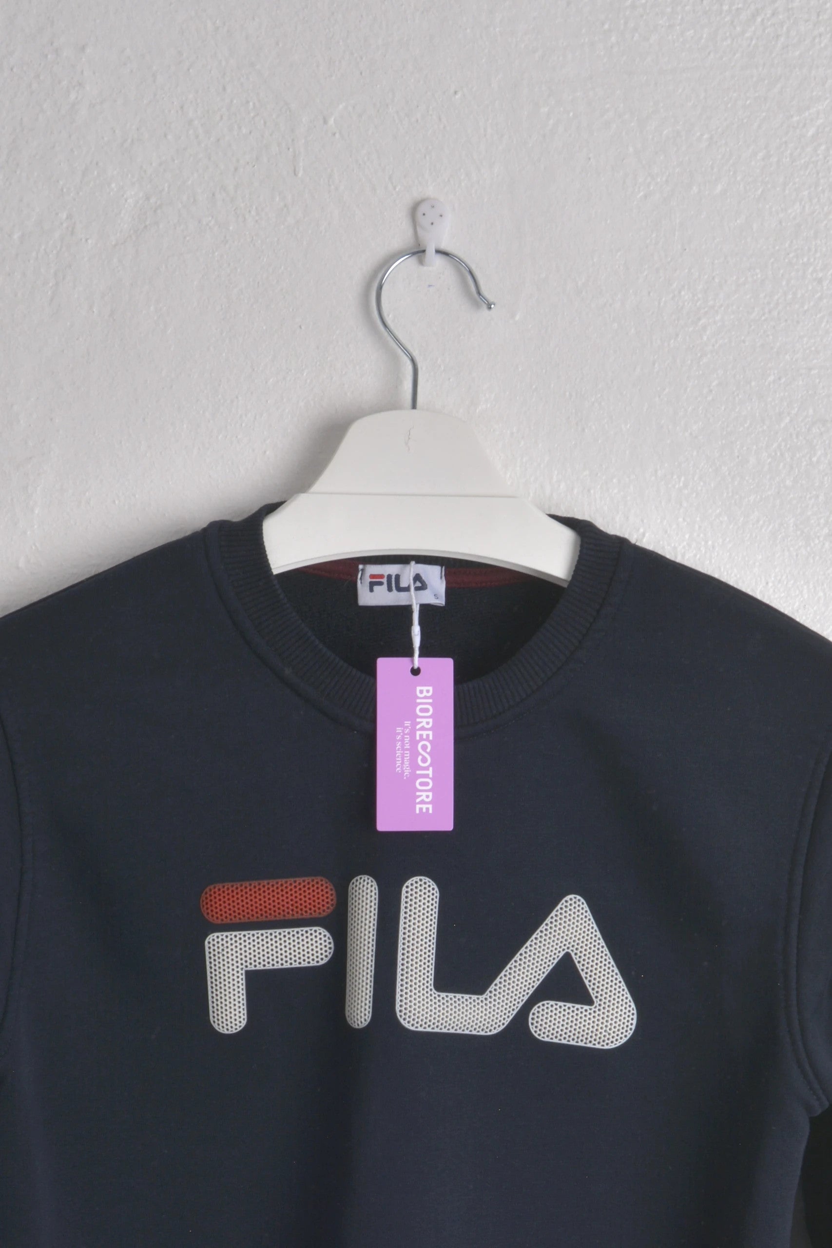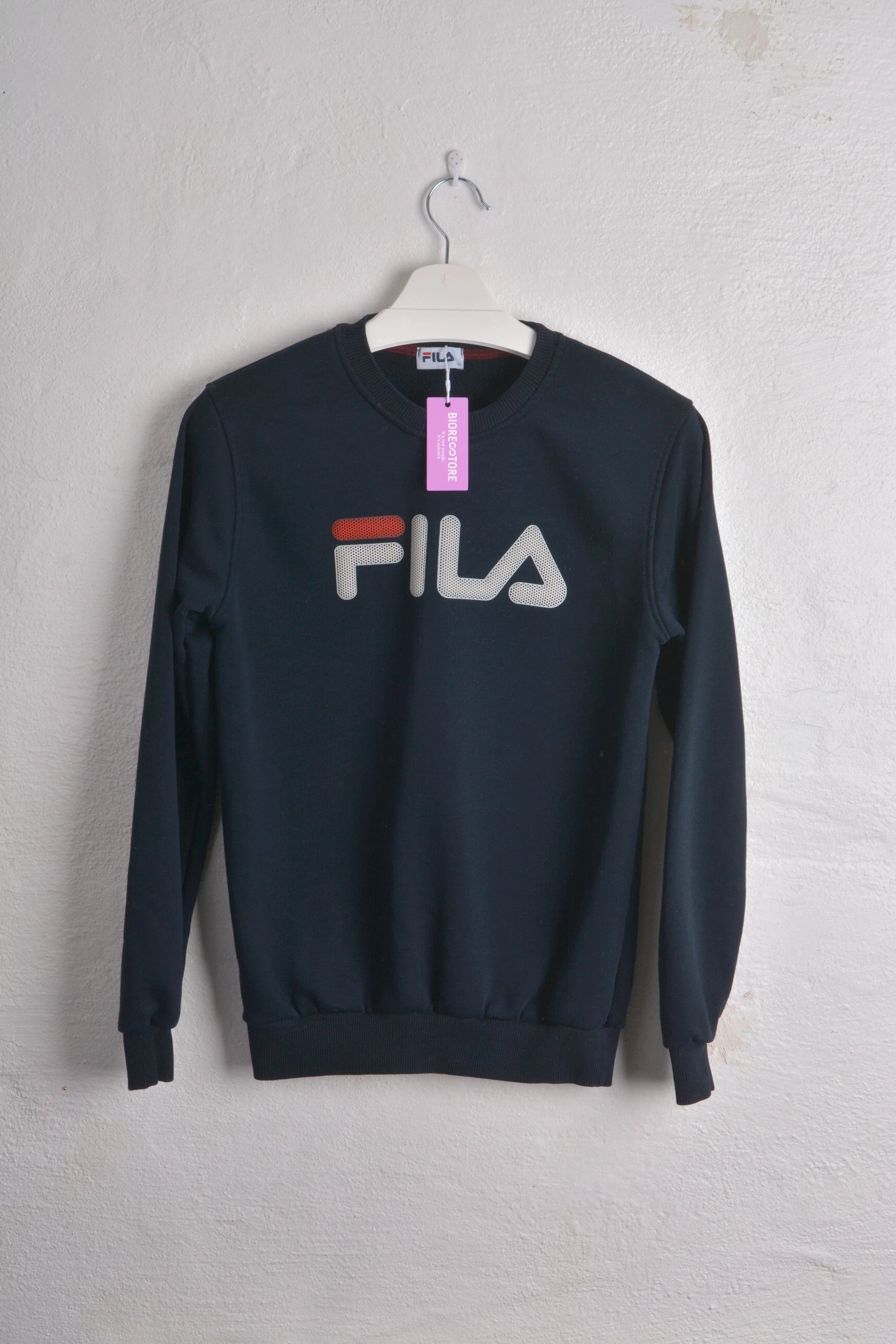 Add a sporty touch to your wardrobe with this sleek navy Fila sweatshirt, new with tags. The bold logo in a unique design makes it stand out as a great choice for both an active day or a casual look #FILA #filasweatshirt #filamensweatshirt #sweatshirts