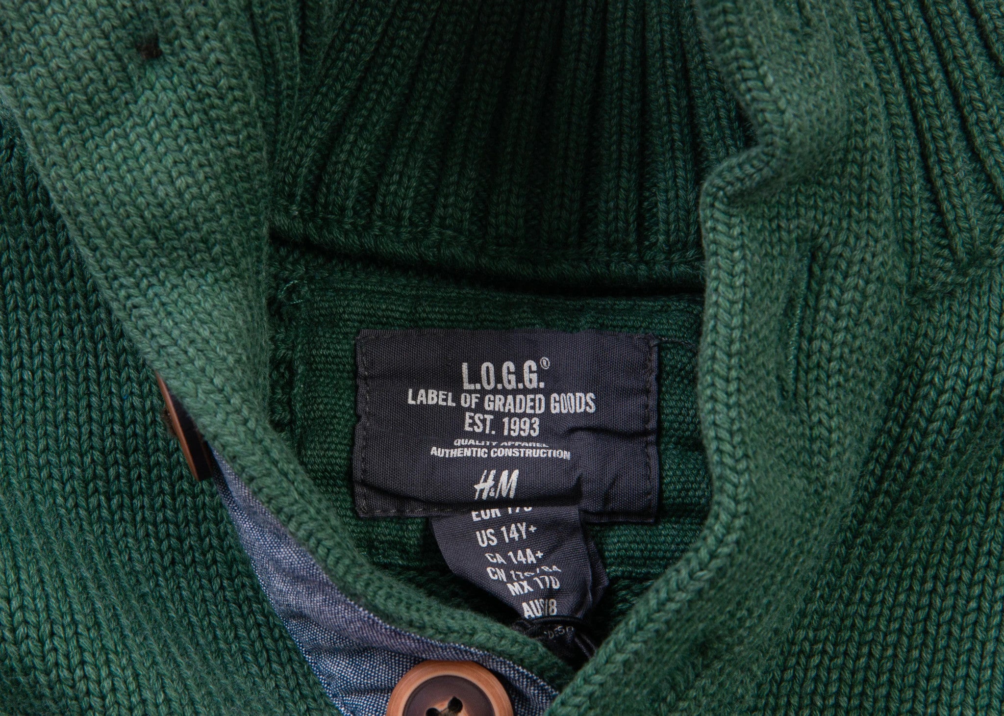 Embrace the lushness of green with this L.O.G.G. by H&M shawl collar sweater, now brilliantly bio-restored for a premium look and feel. This cozy knit is perfect for those who seek style with a sustainable ethos. Available on Vinted for the eco-conscious and the fashion-forward. #h&m #h&msweater #sweater #mensweater #greensweater #cottonsweater