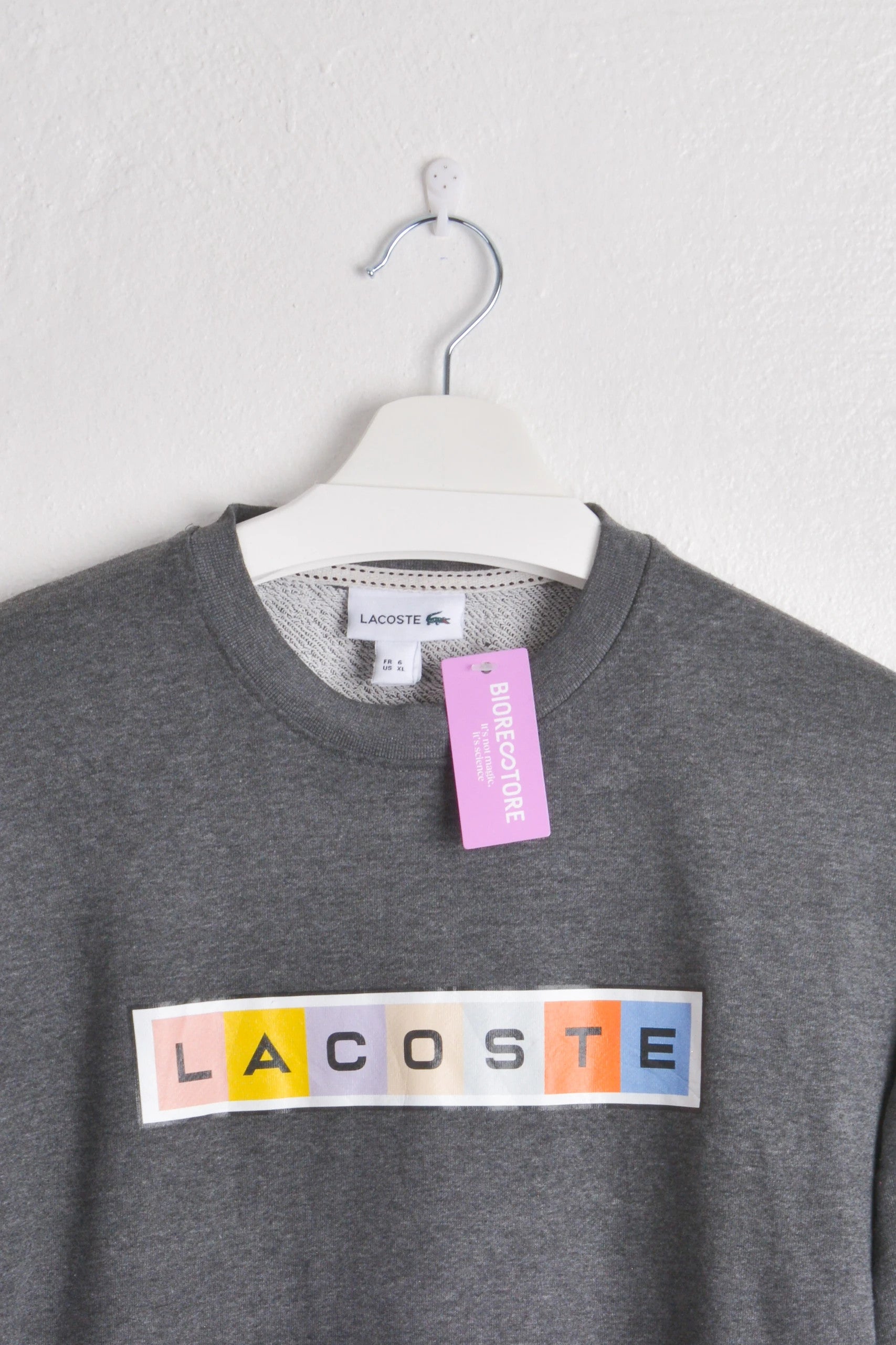 Add a playful twist to your casual look with this Lacoste heather grey sweatshirt, featuring a multicolor block-letter logo across the chest. This sweatshirt offers a comfortable fit and a touch of whimsy, making it perfect for everyday wear. Brand-new with tags, it’s a fresh and fun addition to any wardrobe that doesn't compromise on comfort or style. Ideal for those who enjoy vibrant yet subtle fashion statements. #Lacoste #Lacostesweatshirt #mensweatshirt #sweatshirt #lacostemensweatshirt