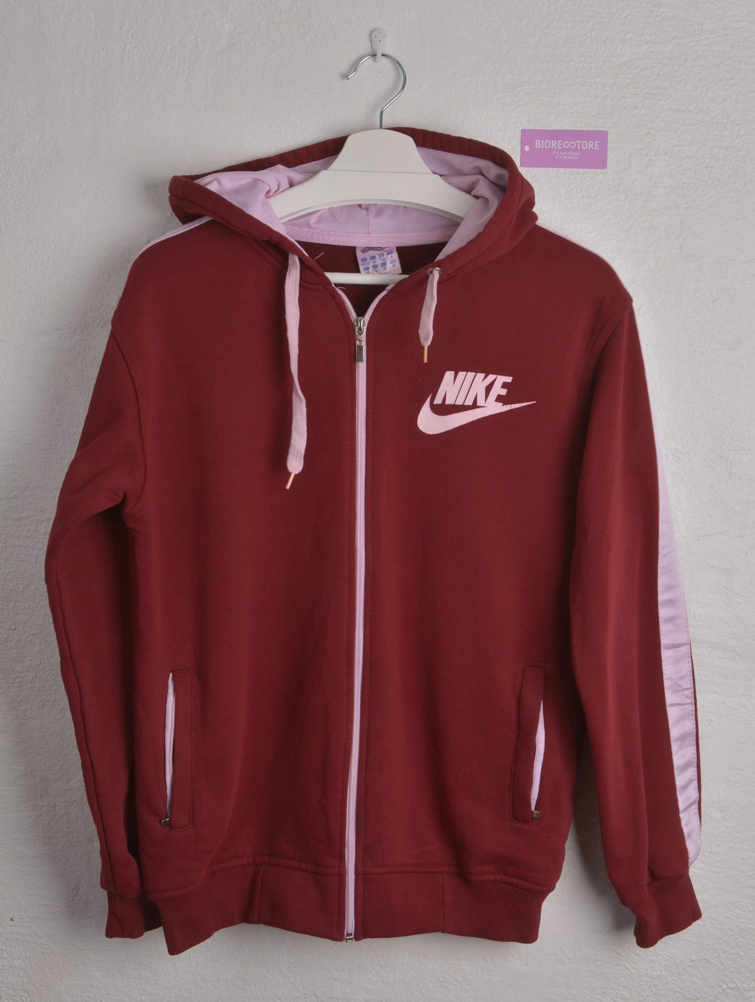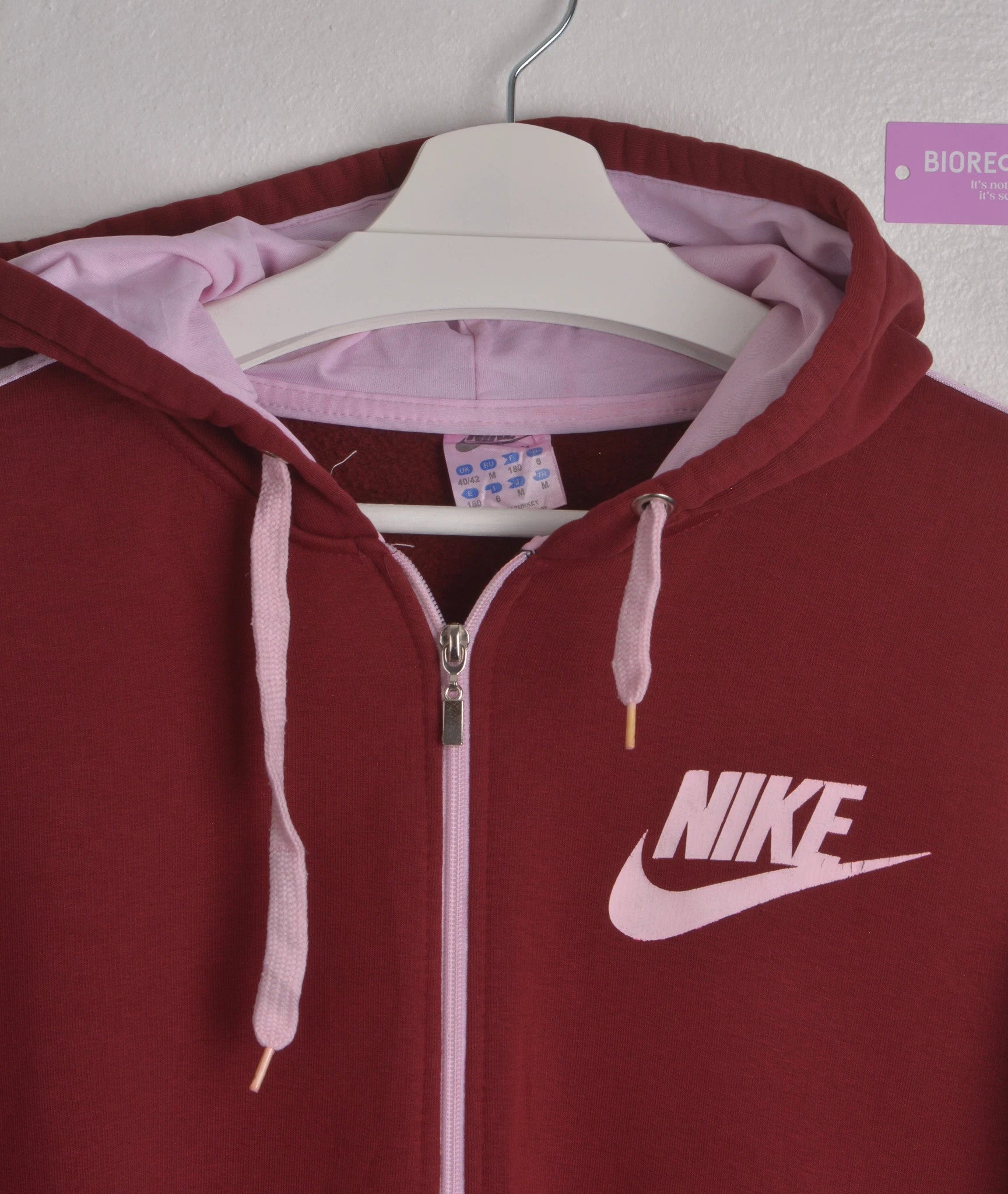Effortlessly cool and supremely comfortable, this Nike zip-up hoodie is the perfect layer for all seasons. The warm burgundy tone with soft pink accents offers a stylish contrast, making it a versatile addition to any outfit, whether you're hitting the gym or just keeping it casual. #Nike #brand #womenhoodie #nikewomenhoodie #womenwear #womenstyle #vintagehoodie #hoodies #hoodie