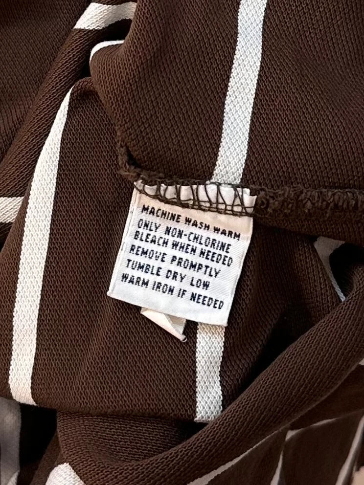 This brown striped polo shirt is laundered and for a refreshed, restored & renewed look, ensuring it feels great from the moment you put it on. It's practical, stylish and on trend to make heads turn whilst having the quality of a great condition item with the fantastic benefits of sustainable vintage clothing💚 ✅ Chest: 58cm ✅ Length: 78cm ✅ Sleeve: 23cm ✅ Laundered and refreshed - ready to wear! ✅ As new condition ✅ No Bobbles, Pilling, Lint, Color Fading or visible signs of wear and tear #poloralphlauren #RalphLauren #RalphLaurenFashion #RalphLaurenLife #RalphLaurenStyle #PoloLife #poloshirt #polo #tshirt #kaos #kaospolos #kaosmurah #kaospolo #poloshirtmurah #konveksi #kaoskerah #poloshirts #seragam #tshirts #bordir #shirt #poloshirtsecond #kaosdistro #menpolo #womenpolo #y2kstyle #summerpolo #secondhandfashion #retro #thriftshop #vintageclothing #SustainableFashion #PreLovedFashion