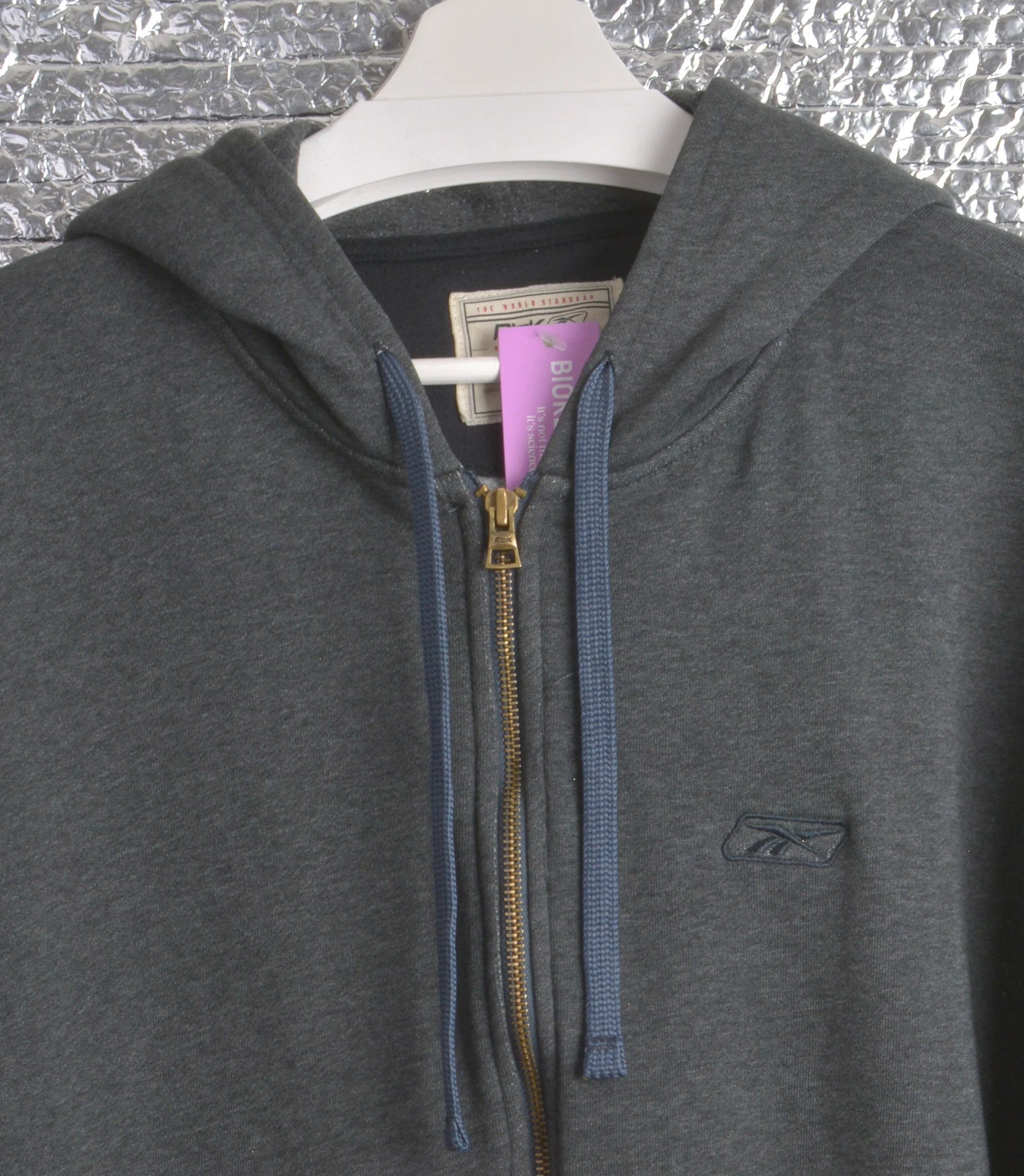 Stay comfortable and classic with this dark grey zip-up hoodie from Reebok. Perfect for layering or wearing on its own, this hoodie offers a cozy fit and a timeless look. ✅ Laundered and refreshed - ready to wear! ✅ As new condition ✅ No Bobbles, Pilling, Lint, Color Fading or visible signs of wear and tear #Reebok #Hoodie #ZipUp #CasualWear #Fashion #MensFashion #Biorestore #EcoFriendly #SustainableFashion #PreLoved #LikeNew #Style #Comfort #WardrobeEssentials
