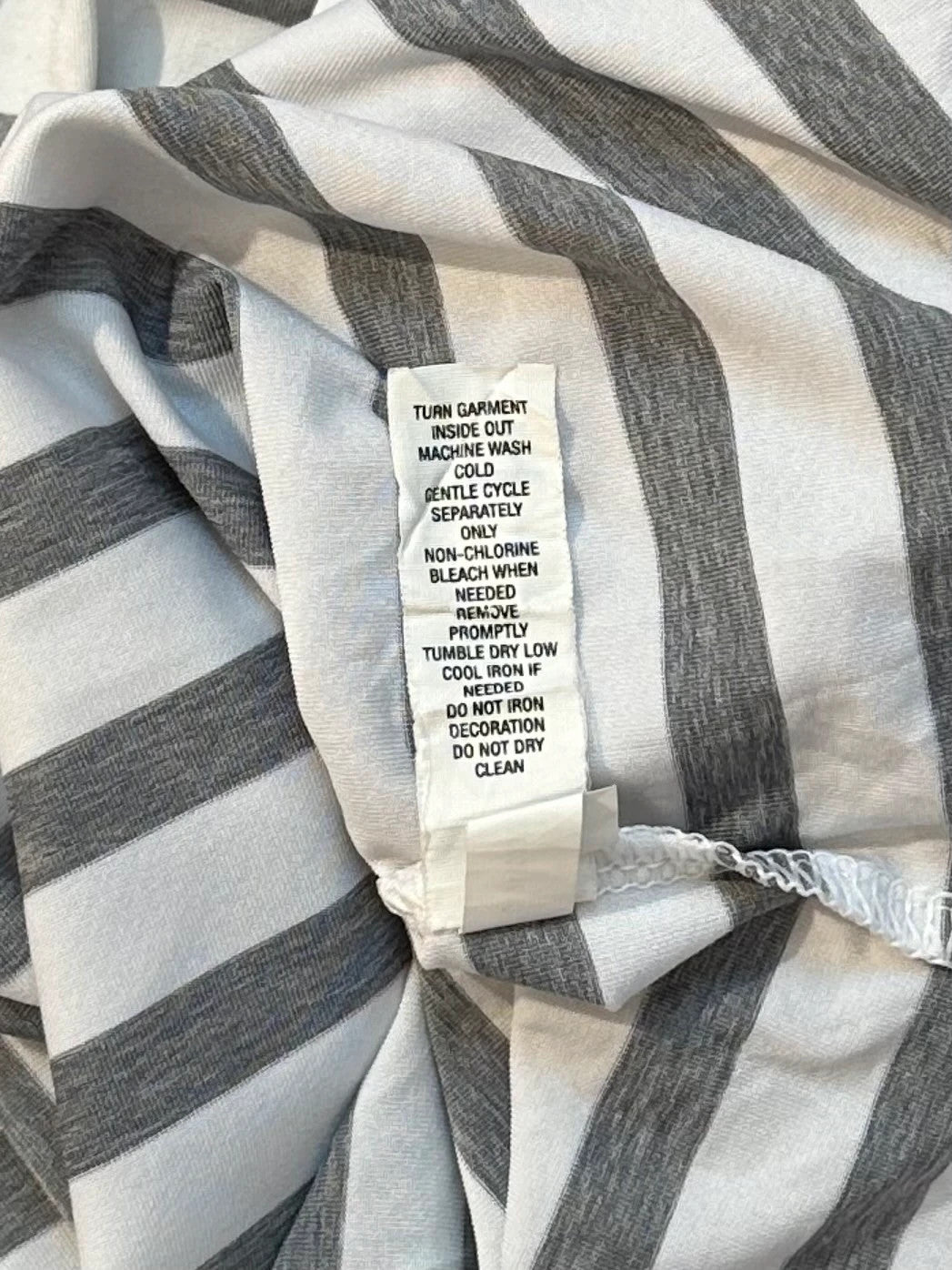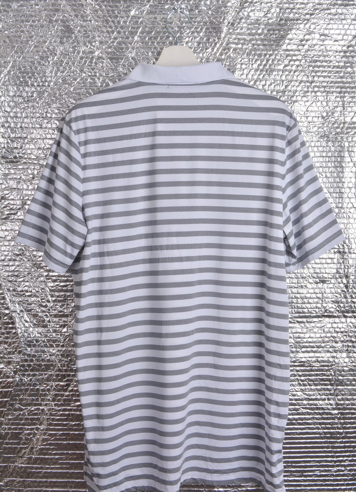 This gray and white striped polo shirt is laundered and for a refreshed, restored & renewed look,...